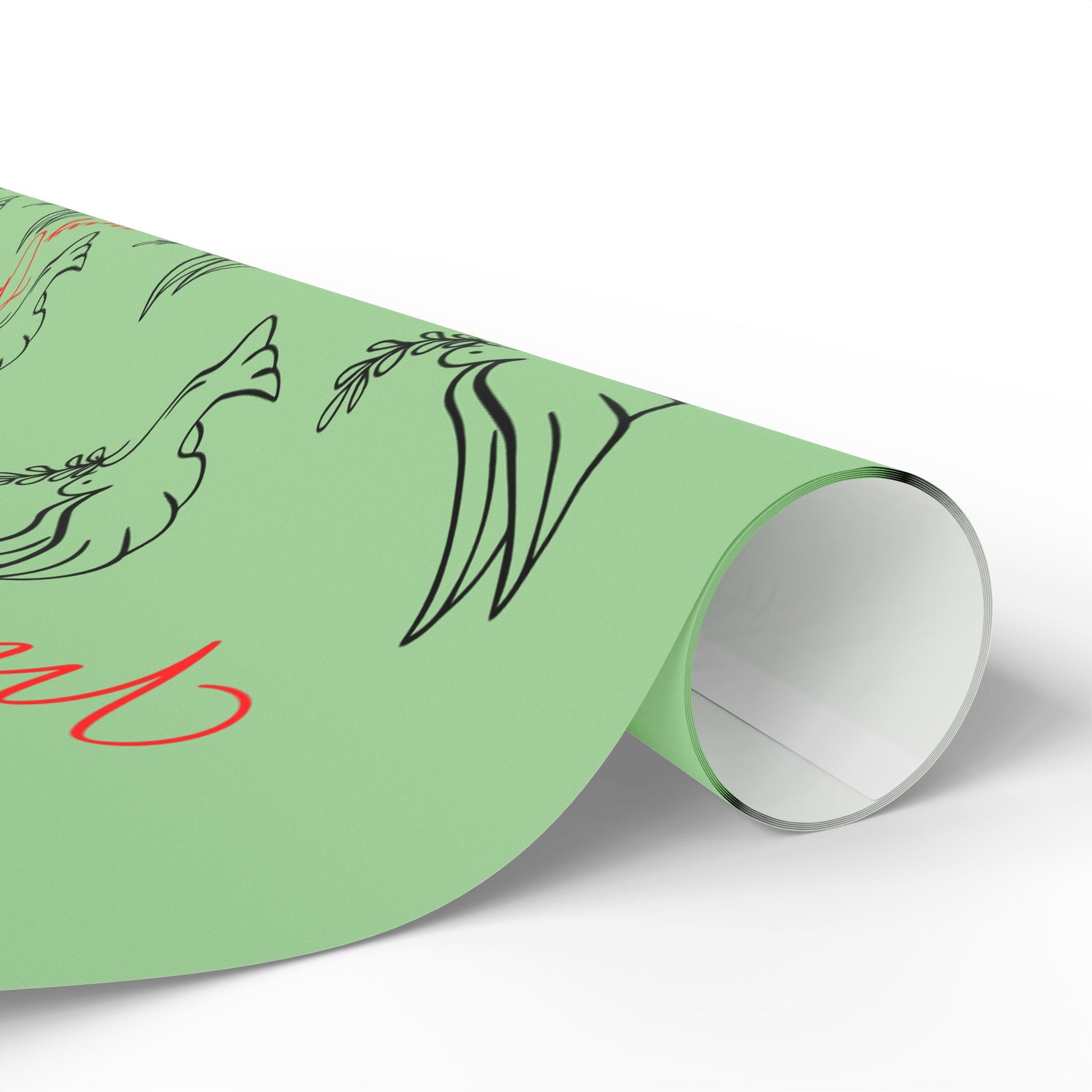 Elegant dove wrapping paper with festive greetings. 90gsm fine art paper, glossy or matte finish. Three sizes available. Perfect for Christmas gifts.